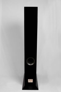 Elegant skrånende kabinet for time alignment, facetteret baffel og optimeret diskantposition for reduceret diffraktion.